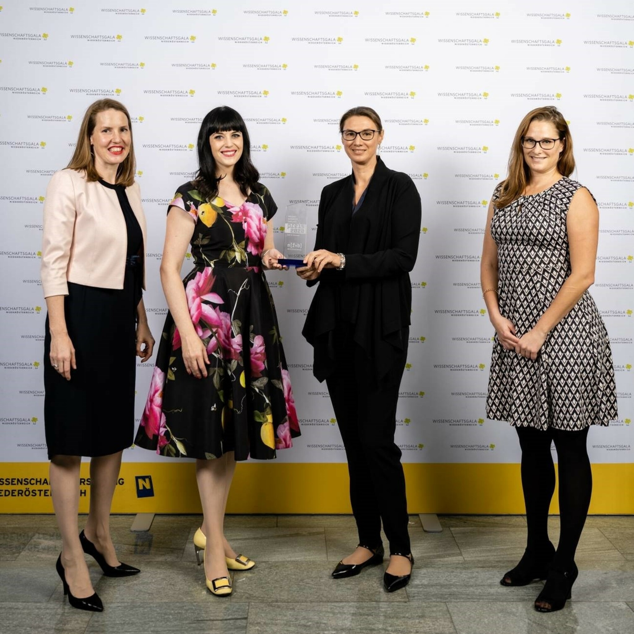 Die 4 “The STEM fatale Initiative” Gründerinnen bei der Wissenschaftsgala 2020 nach der Preisverleihung des „Wissen schaf[f] Zukunft“ Preises in der Kategorie „Call for Concept“: Angela Bitto-Nemling, Nicole Amberg, Lisa Cichocki, Melissa Stouffer, (v.l.n.r.),
